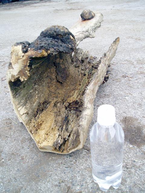 樹皮の乾燥と、洞の朽ち具合が、流木みたいです。ディスプレイなどにご利用ください。
